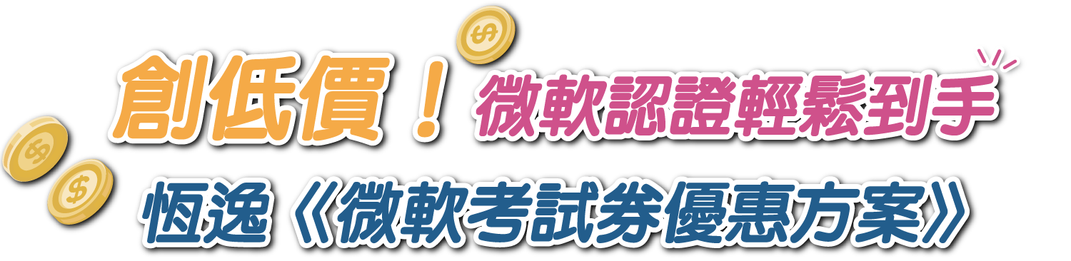 創低價!微軟認證輕鬆到手!恆逸《微軟考試券優惠方案》