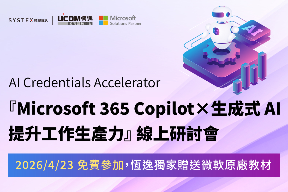 | 2026/6/30前參加Azure認證系列,贈送1張微軟考試券(每科原價USD83)。若考試未通過,可以NT$1,000優惠價報名重考 |