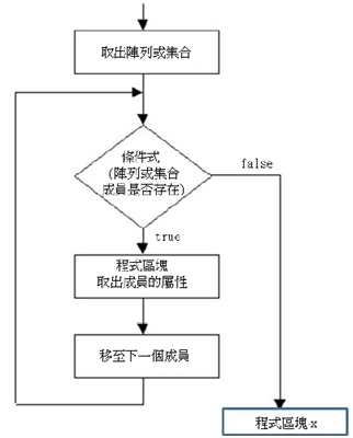 - 陣列或集合成員會依序代入foreach 迴圈變數中。