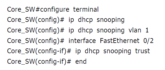 當DHCP用戶端透過DHCP取得合法的IP組態資訊後,Switch即會透過DHCP snooping的機制,建立合法IP位址與合法MAC位址的對應資訊表,可使用以下指令確認: