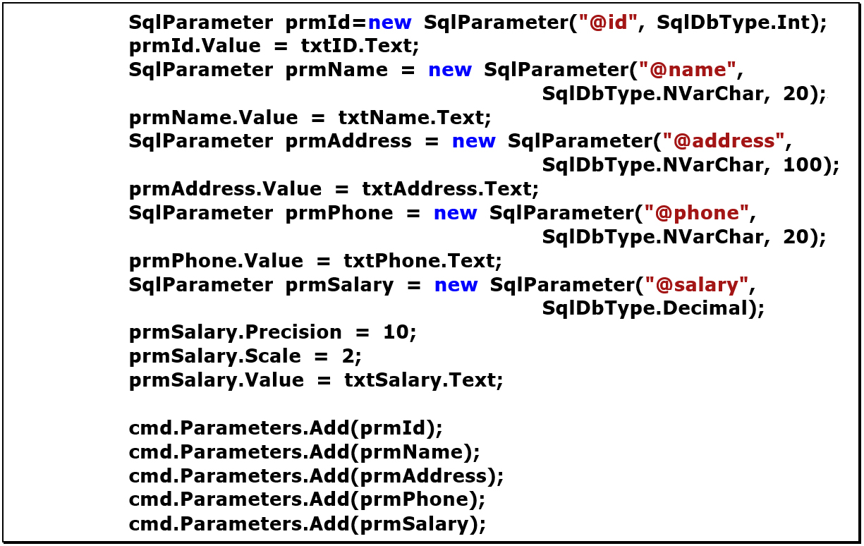 - TextBox: txtID, txtName, txtAddress, txtPhone, txtSalary
