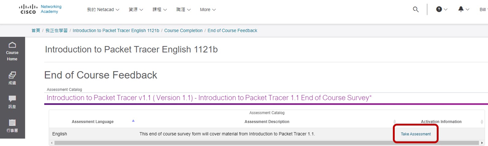 開始進行課程:啟用帳號後直接使用思科網站的帳號密碼登入網路學苑,可以開始進行課程。