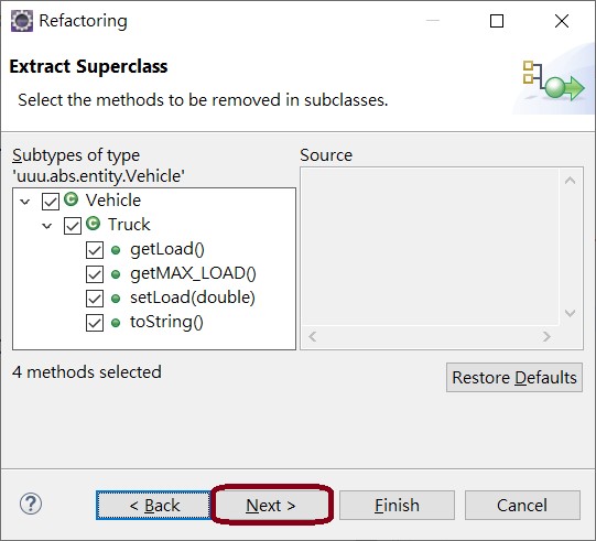 因為有這樣的需求,[eclipse]工具就提供了可以讓開發人員直接從子類別程式將共通之處向上推出父類別:
