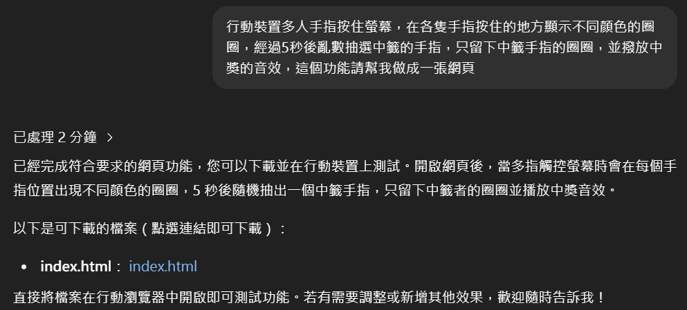 寫了一整天完成這個功能,就在覺得自High的狀態下,想看看ChatGPT能不能也做出來,結果我下了一小段簡單的指令: