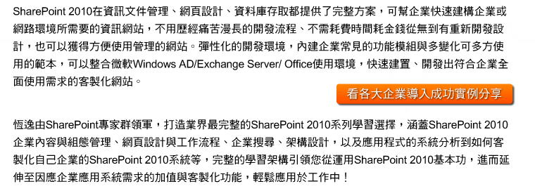 【SPSWCM】SharePoint 2010網頁設計與工作流程 /時數:35小時 |